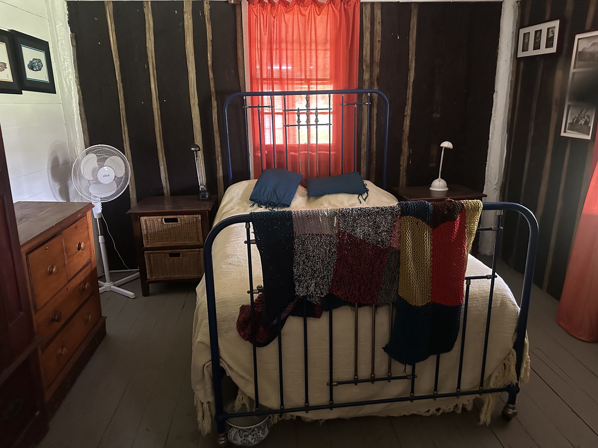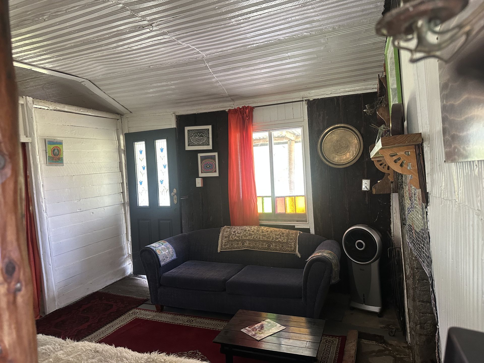 At the heart of the property sits a rare, beautifully restored two-bedroom settlers’ cottage, rich in character and warmth. Featuring a cosy fireplace, wood stove, spacious verandahs and a groovy bathroom with mosaic flooring, the home blends rustic charm with thoughtful modern comforts. Stand-alone solar power, mobile reception and quality finishes ensure easy living from day one.